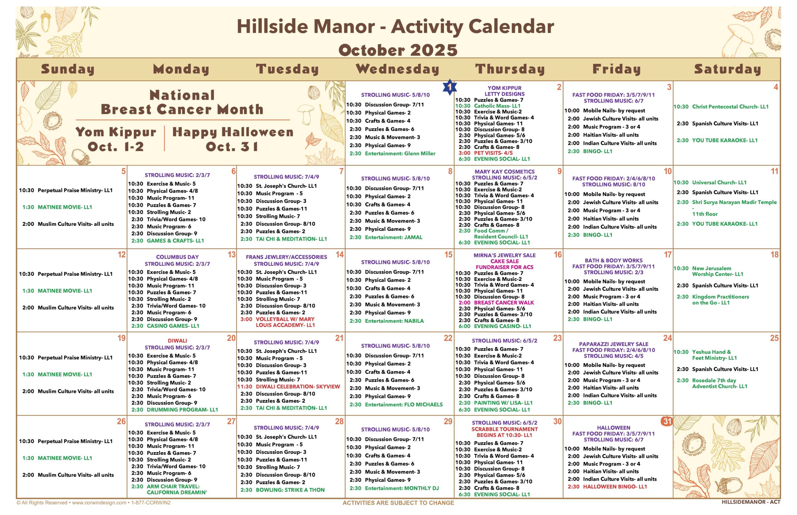 Our dedicated, culturally sensitive program for our residents of Indian descent at the Hillside Manor Rehabilitation and Extended Care Center. Mera Chota Ghar was developed to meet the growing needs of our surrounding neighborhood population of individuals of Indian, Guyanese, Bengali